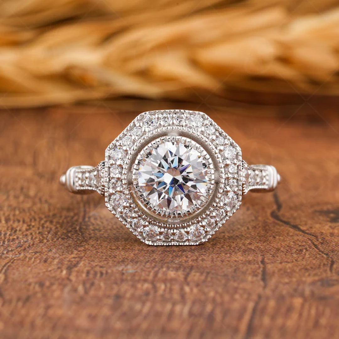 Asuri Jewels presents exquisite vintage-style moissanite halo engagement rings, designed to amplify sparkle with finely set halo accents and elegant craftsmanship. Each ring reflects timeless sophistication and enduring beauty.