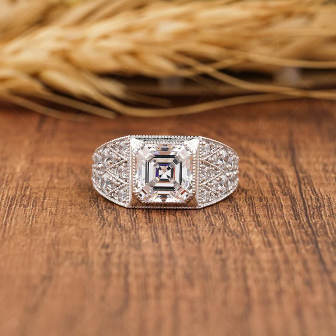 Asuri Jewels presents exquisite vintage-style moissanite side stone rings, designed with ornate detailing and shimmering side accents that gracefully frame the center stone. Each piece reflects heirloom elegance and refined artistry.