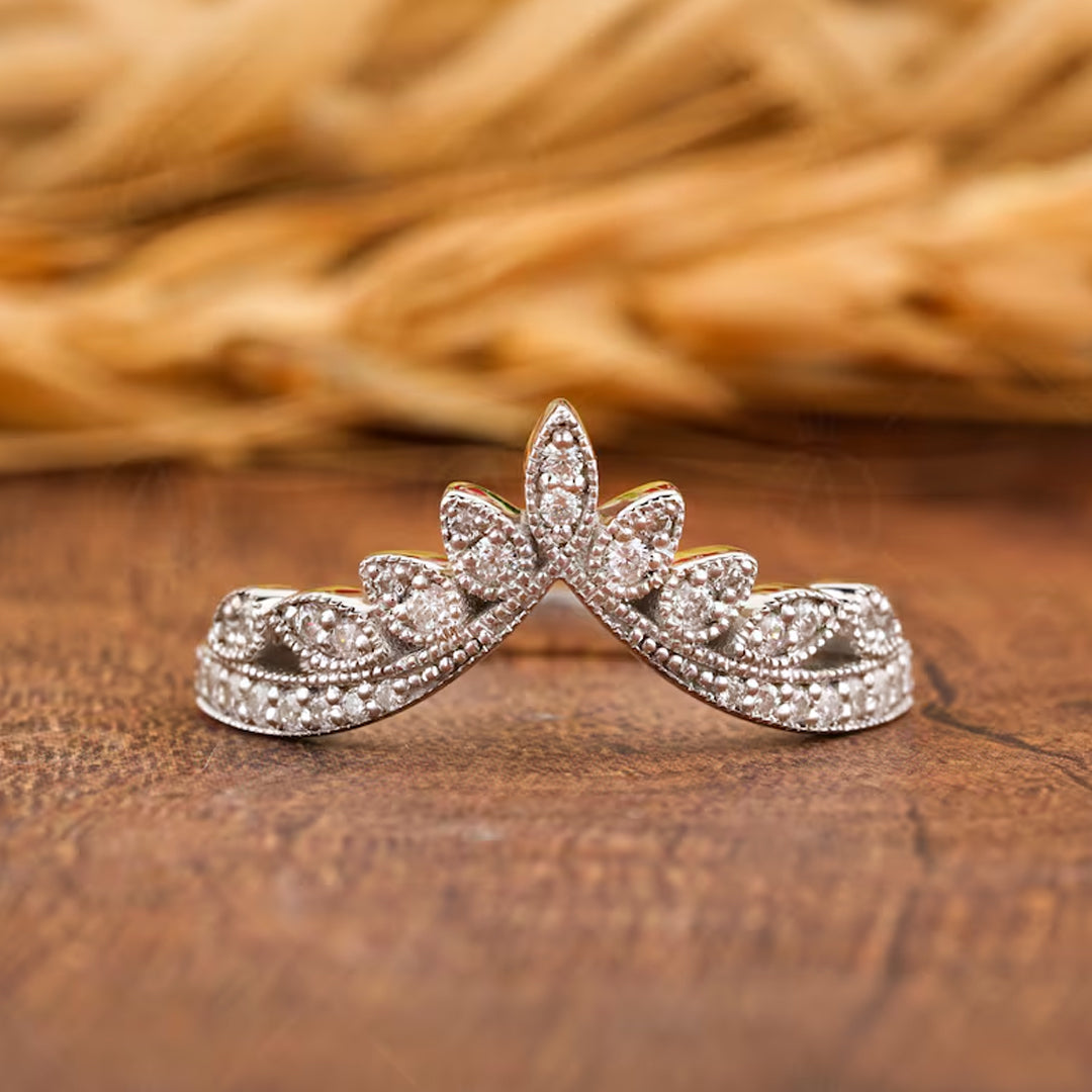 Asuri Jewels presents exquisite vintage-style moissanite curved wedding bands, thoughtfully designed with graceful contours and finely set stones that complement engagement rings beautifully. Each band reflects timeless sophistication, elegant craftsmanship, and enduring beauty.