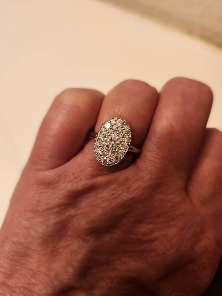 Oval Shaped Moissanite Diamond Cluster Engagement Ring Micro Pave Statement Ring Multi Stones Celebrity Inspired Ring For Women