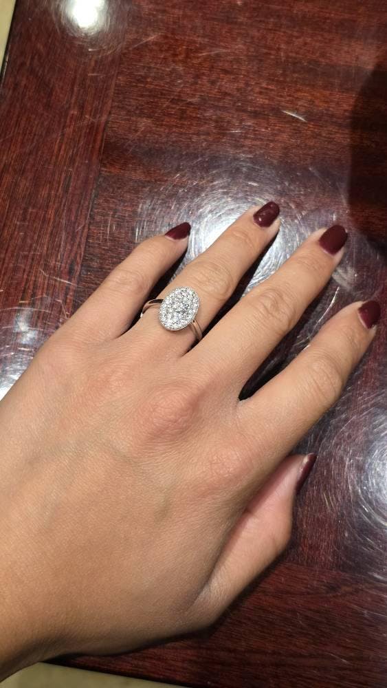 Oval Shaped Moissanite Diamond Cluster Engagement Ring Micro Pave Statement Ring Multi Stones Celebrity Inspired Ring For Women, Unique Promise Rings For Women, Micro Pave Setting Engagement Ring