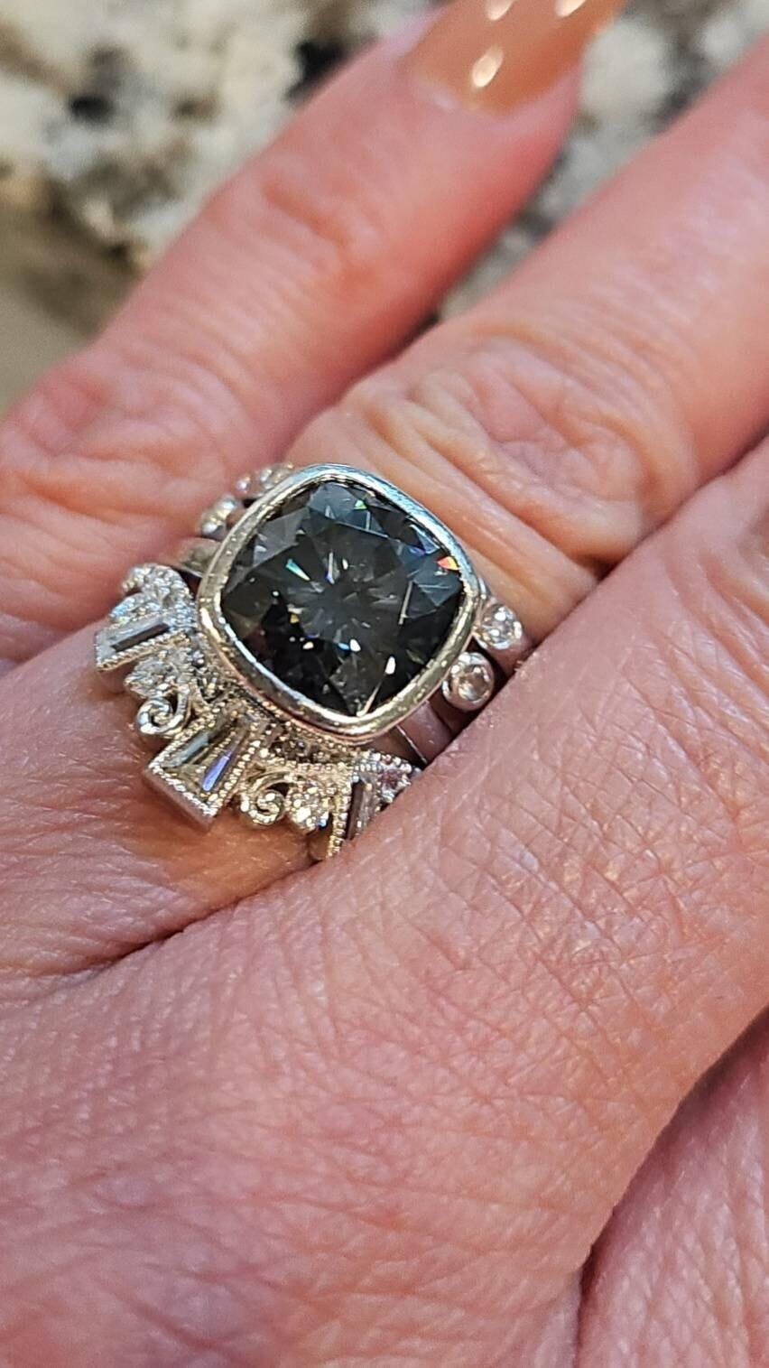 Curved Stackable Ring, Moissanite Filigree Wedding Band, Tiara Crown Style U Shaped Contour Band, Art Deco Matching Band, Womens Unique Ring, Nesting Band Ring, White Gold Stacking Ring, Bridal Band For Wedding