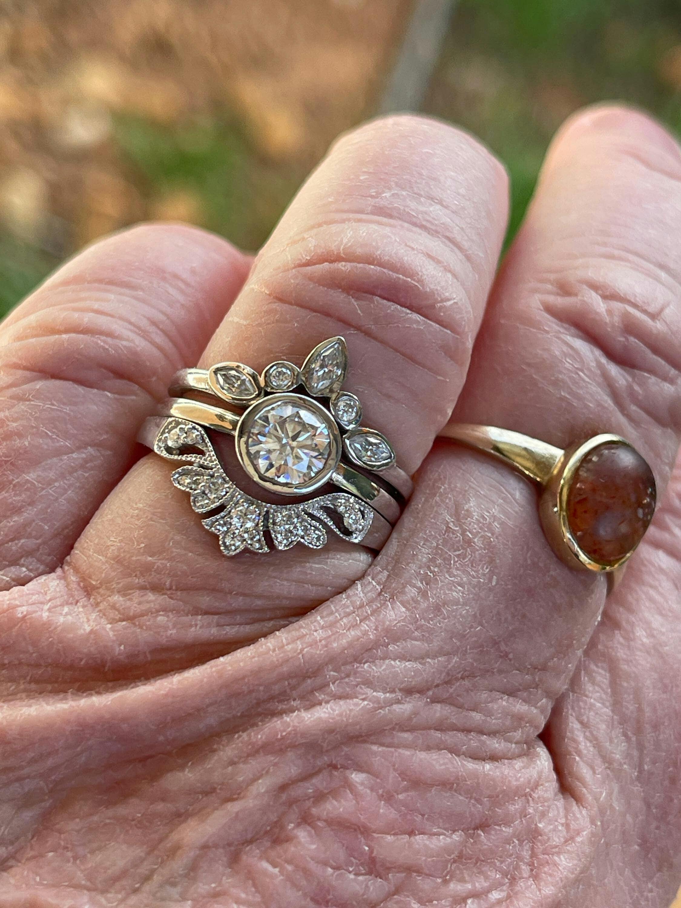 Vintage Curved Wedding Bands Women, Art Deco Moissanite Nesting Band, Contoured Stackable Rings, U Shaped Matching Band, Bridal Ring, Arched Wedding Band, Stacking Ring